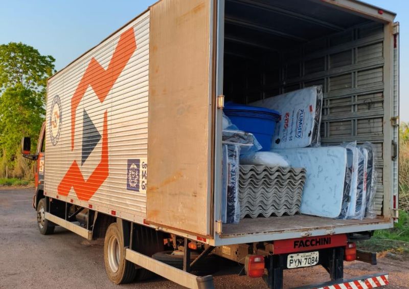 Um caminhão carregado com telhas, caixas d’água, colchões e kits dormitório foi encaminhado para atender as famílias afetadas.