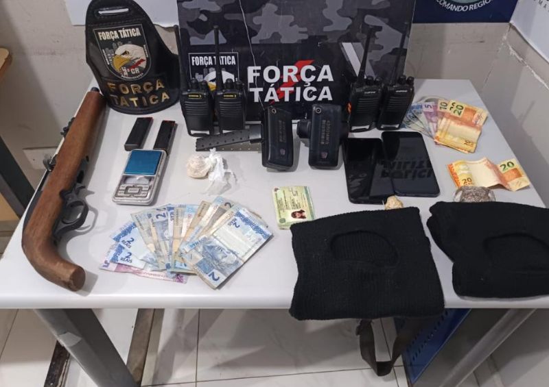 Durante operação, polícia apreende armas, drogas e rádios comunicadores