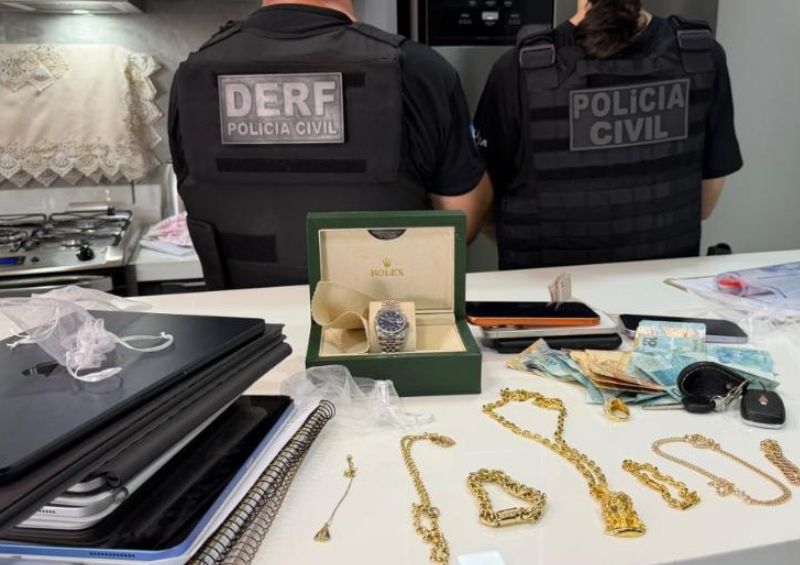 Durante a busca, foram apreendidos diversos itens de alto valor, incluindo um notebook, um veículo Onix, três iPads, um monitor Asus, três aparelhos celulares, 17 cartões bancários, R$ 1.850 em espécie, dois cadernos com anotações, dois cheques de R$ 4.500 cada, 10 peças douradas entre correntes e pulseiras, e um relógio com caixa da marca Rolex, além de outros pertences vinculados às atividades ilícitas.